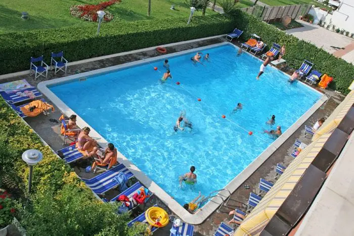 L'albergo da quest'anno offre ai clienti un area con brandine e piscina.